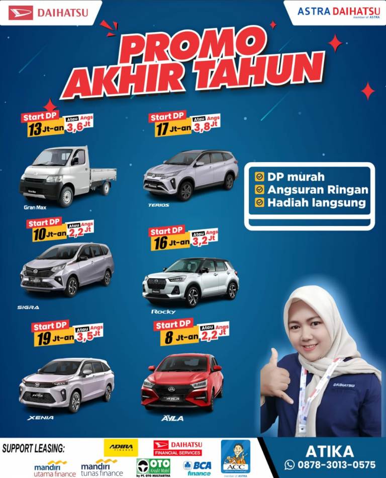 Pelayanan Tika dari Daihatsu Pemalang sungguh istimewa. Beliau membantu saya dengan sangat baik, menjelaskan semua fitur mobil dengan detail, dan memberikan penawaran terbaik. Saya sangat puas dengan pembelian mobil Daihatsu saya.